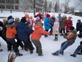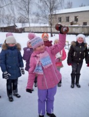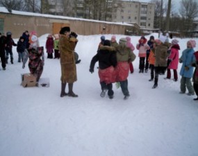 Праздник продолжился на улице. Чучело Масленицы поставили в круг. Для ребят Инна Анатольевна Крылова провела игры: бег в мешках, мяч по кругу, самый сильный и ловкий и т. д. Гуляние закончилось сжиганием Масленицы, чаепитием с блинами. Праздник удался на славу!