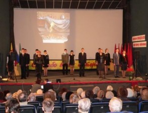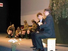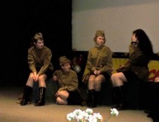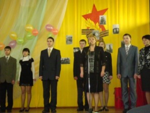Учащиеся 10-11 классов поздравили ветеранов театральной постановкой отрывка из повести Б.Васильева "А зори здесь тихие". Почтили память погибших минутой молчания.