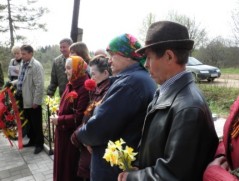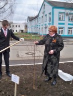 Представителями нашей школы (З.П.Бомбина - директор школы, А.Тишкевич - ученик 9а кл.) была посажена береза.