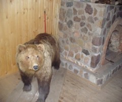 Мы прошли в небольшой домик - визит-центр. В нем - чучела различных зверей и птиц. Мне понравились они все, но больше волк, енотовидная собака и ушастая сова. Ещё мы видели предметы древнерусского быта.