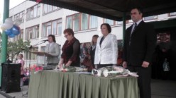 школе. 11 классы давали им наказ . Директор школы Бомбина Зинаида Петровна а так же почетные гости поздравляли учащихся, учителей, родителей с Днем Знаний.
