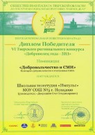 07.04.2012г. На весенних каникулах участники школьной телестудии «Импульс» и редколлегия школьной печатной газеты приняли участие в работе международного фестиваля детско – юношеской журналистики и экранного творчества «Волга – Юнпресс». Участие в работе было результативным. Школьная редколлегия получила диплом третьей степени в номинации «Лаконичность и строгость изложения». Участники телестудии Александр Миронов (8 кл.) и Денис Китов (11 кл.) получили дипломы за лучшие работы. Каникулы ребята провели с пользой. Молодцы!!!