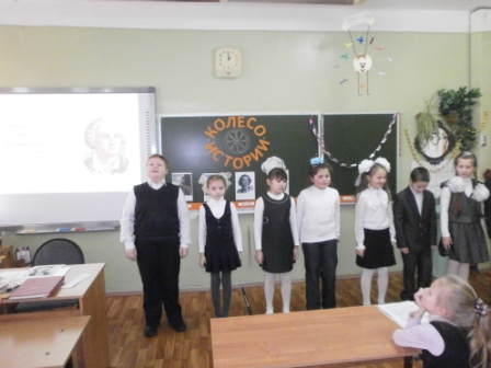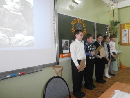 - группа учащихся 3б класса (Лемешев Игорь, Ермолаева Ирина, Капустина Евгения, Матвеева Анна, Волобуева Дарья, Комиссаров Никита, Соколова Виктория, Шаньков Андрей) - о выдающемся русском учёном Михаиле Васильевиче Ломоносове,