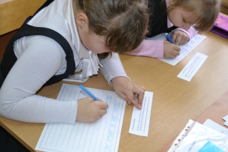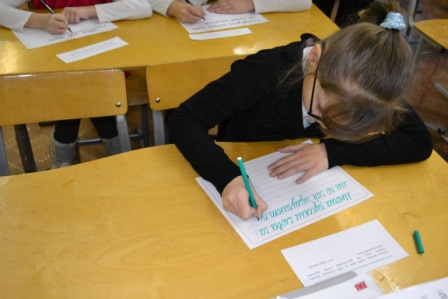 В конкурсе «Золотое перо» приняло участие 39 учащихся 1-4 классов. 1 классы представили на конкурс свои тетради по русскому языку, а вот 2-4 классам пришлось доказывать своё мастерство. Ребятам нужно было записать каллиграфическим подчерком высказывания великих деятелей о русском языке и чтении. Места распределились так: