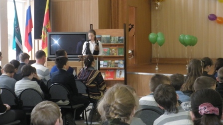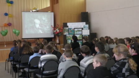 Учащиеся приняли участие в конкурсах рисунков на темы «Леса и их обитатели», «Мир заповедной природы» (лучшие работы - Сниткиной Елизаветы, 7а кл., Миненковой Анны, 5а кл., Никоновой Дианы, 5в кл., Мекшун Данилы, 5в кл., Кулакова Александра, 7а кл.). В викторине о природе «Всезнайка» для 5-6 классов самым активным признан 6а класс, а победительницей стала Яковлева Алина.