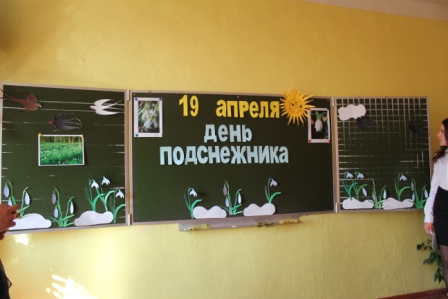 Учащиеся и учителя начальной школы не оставили этот день без внимания День подснежника, который отмечается 19 апреля. В этот день стартовал творческий проект «Весеннее настроение». Каждому классу было дано задание украсить свой класс подснежниками. Старались не только дети, но и взрослые. Родители учащихся активно включились в работу. Разные подснежники можно было увидеть в классах: подснежники, сделанные из бумаги и картона, подснежники на фотографиях, в венках, на окнах, в вазах, на лацканах пиджаков у мальчишек и даже в горшочках. Совету старшеклассников было трудно определить лучший класс, поэтому каждый класс стал победителем в своей номинации. «ГРАН-ПРИ» по праву заслужили учащиеся 3 б класса.