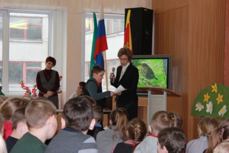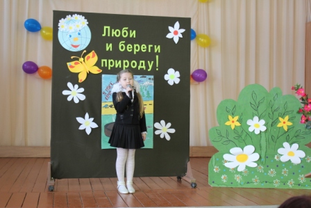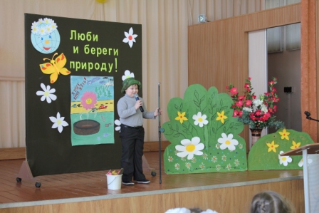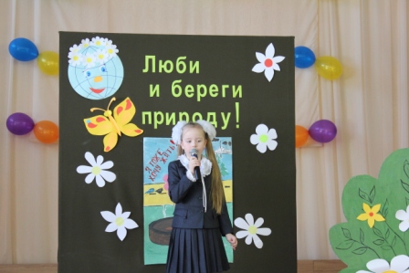 17 апреля прошёл конкурс чтецов «Люби и береги природу». Звучали стихи о красоте природы, о её жителях, стихи –призывы к бережному отношению к природе, её защите. В исполнении Яковлевой Дарьи (1 а), Николаевой Карины (1б), Ивановского Адама (1 в), Гультяева Евгения (1 г), Гавриловой Полины (2а), Неделькина Александра (2б), Баландиной Варвары (2в), Лапкина Игоря(3а), Матвеевой Анны и Прокопченко Оксаны (3б), Гориной Альбины (3в), Самсоновой Юлии(4а), Сивченковой Ирины (4в), Арман Дианы(4б). Члены жюри назвали победителей конкурса. Ими стали: Яковлева Дарья (1 а), Николаева Карина (1б), Гультяев Евгений (1 г), Гаврилова Полина (2а), Неделькин Александр (2б), Лапкин Игорь(3а), Матвеева Анна и Прокопченко Оксана (3б), Горина Альбина (3в), Самсонова Юлия (4а), Сивченкова Ирина (4в).