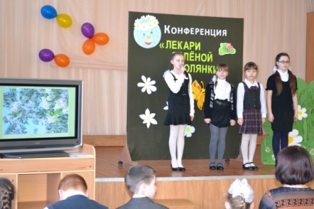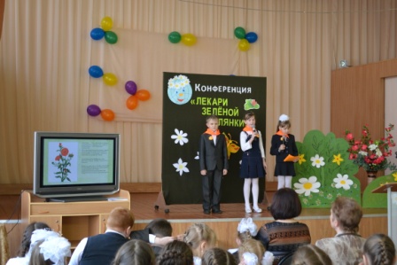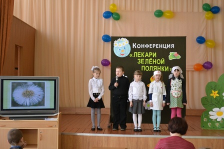 15 апреля в рамках проекта «Люби и береги природу» в актовом зале прошла научная конференция «Лекари лесной полянки» Человек ещё издавна заметил, что животные среди множества растений выбирают только те, которые помогут им излечиться. Человек начал изучать эти растения и их свойства. С некоторыми лекарственными растениями ребята познакомились на конференции. О берёзе рассказали учащиеся 1 а класса, о дубе – 1 б класса, о зверобое – 4 а класса, об одуванчике – 1 г класса, о ландыше – 2 в класса, о черёмухе – 3 в класса, о крапиве – 4 б класса, о подорожнике – 3 а класса, о шиповнике – 3 б класса, о мать -и - мачехе – 2 б класса, о календуле – 2 а класса, о землянике – 4 в класса. Ребята много нового узнали о лекарственных растениях, собирая которые нельзя забывать о бережном отношении к природе, о том, что мы приходим в гости в Дом природы и должны соблюдать правила поведения и доброго отношения ко всем жителям этого большого Дома. На память о конференции каждый участник получил сертификат. На втором этаже школы оформлена «Поляна здоровья» из лекарственных растений, о которых шларечь на конференции. Все растения изготовлены учащимися начальной школы.
