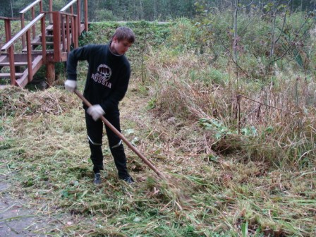 К этому святому месту и отправились учащиеся 6а класса 19 сентября. Неприглядная картина предстала перед ребятами: кругом разбросаны пакеты, бумажки, обертки, пластмассовые и стеклянные бутылки, трава выше пояса (видимо, никто в этом году ее не скашивал). Все дружно принялись за работу.