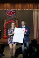 13.02.2015г. в ДК "Шахтер" прошел ежегодный шоу-конкурс "Самая влюблённая пара". В конкурсе участвовали пары, представляющие городские учебные заведения: Лидия Ильинова и Илья Тишин (Гимназия №2), Дарья Галактионова-Владимирова и Тимофей Моисеенков (Школа №3), Анна Калашник и Дмитрий Полло (Школа №4), Мария Смирнова и Константин Макаренков (Школа №5). Все участники - яркие творческие личности. Конкурсные задания ("Визитная карточка", танцевальный, кулинарный и творческий конкурсы, совместное рисование символа любви, украшение дерева приготовленными заранее сердечками, лентами и конфетами) были интересными и держали в тонусе жюри и зрителей. В итоге самой влюблённой парой стали Анна и Дмитрий. Ребятам нашей школы - Марии и Константину - достался титул самой стильной пары, Лидии и Илье - самой артистичной, Дарье и Тимофею - самой романтичной.