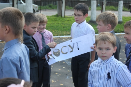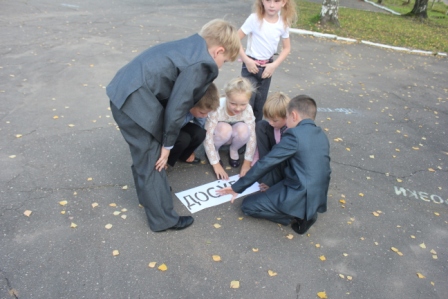 В нашей школе прошла акция «Говори правильно». Каждый класс на асфальте написал словарное слово, которое нужно запомнить и произносить верно.