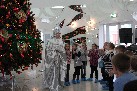 В заключение экскурсии мы встретились с красавицей Зимой в главном зале, где стоит гордость подворья - двадцатиметровая ёлка. И дети, и родители поздравили Зиму с днём рождения, поводили хороводы и даже сфотографировались с ней.