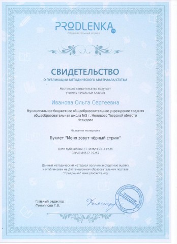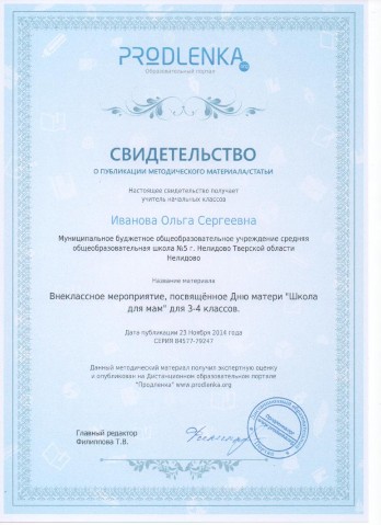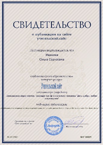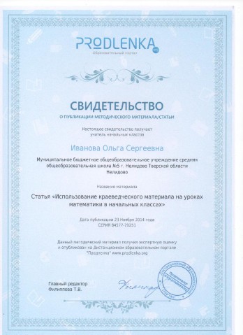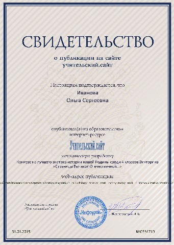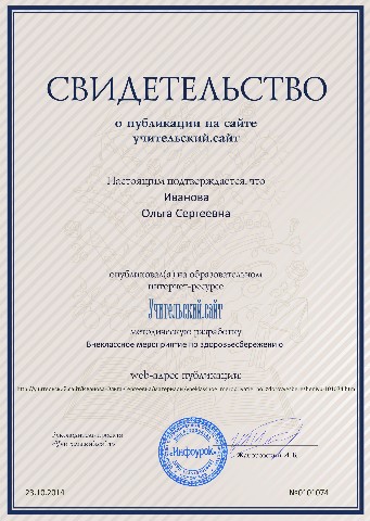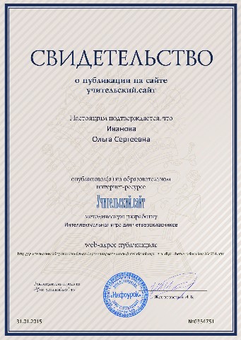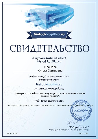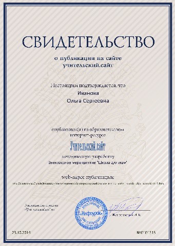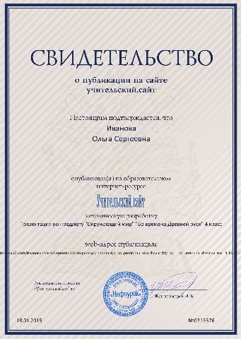 Свидетельства о публикации