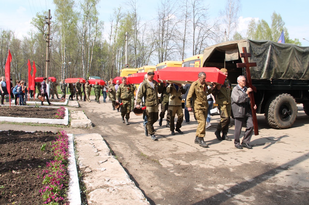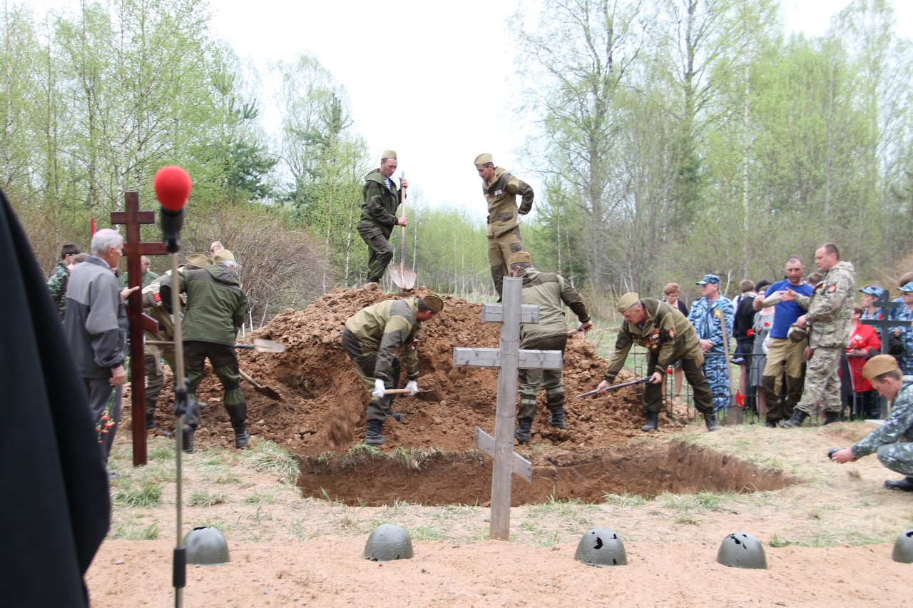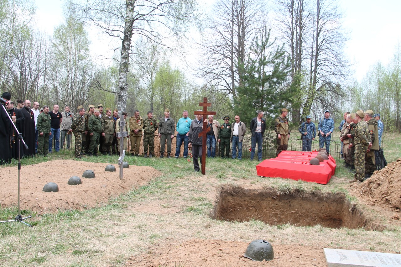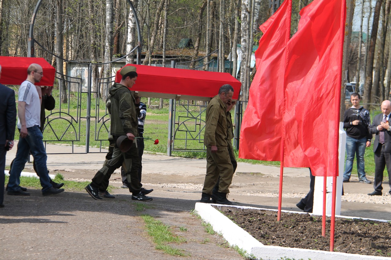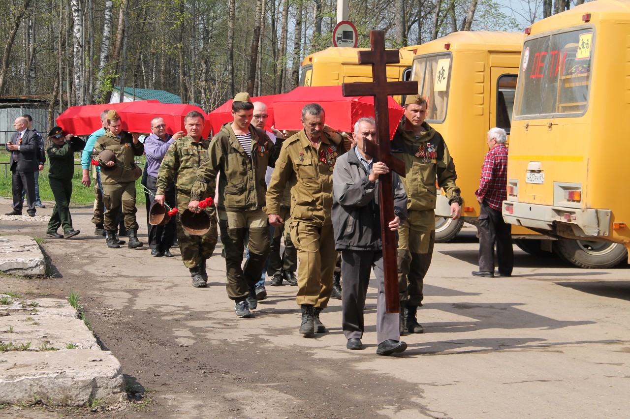 По окончании работы интерактивных площадок участники Конференции собрались в актовом зале Школы №5 для подведения итогов теоретической части Конференции. А впереди всех ждало незабываемое мероприятие 2-й части Конференции – участие в перезахоронении останков семи воинов, погибших в годы Великой Отечественной войны, найденных во время работ поисковыми отрядами г. Нелидово «Гвардия» и «Вечность». Торжественной колонной участники Конференции прошли к мемориалу Славы на площади Жукова, где состоялся митинг-реквием в память о погибших, во время которого была отслужена лития. Все собравшиеся у мемориала Славы почтили память погибших в годы войны минутой молчания. Затем гробы с останками солдат были погружены в машины «Урал» для того, чтобы доставить их в д. Карпово, где должно было пройти перезахоронение. Туда же отправились и участники Конференции. По прибытии после панихиды в память о погибших воинах гробы с останками солдат предали вечному покою на Нелидовской земле, а на их могилу были возложены алые гвоздики. Очень жаль, что имена этих воинов остались неизвестными, но память об их подвиге, мужестве навсегда останется в сердцах нелидовцев.
