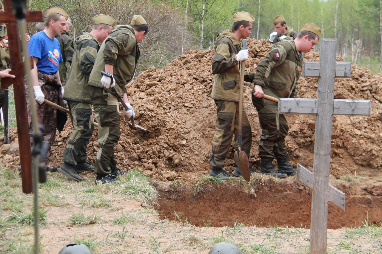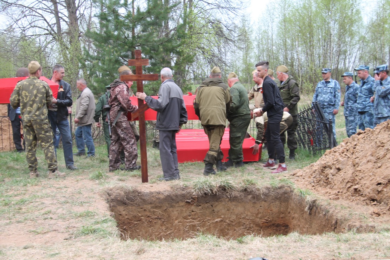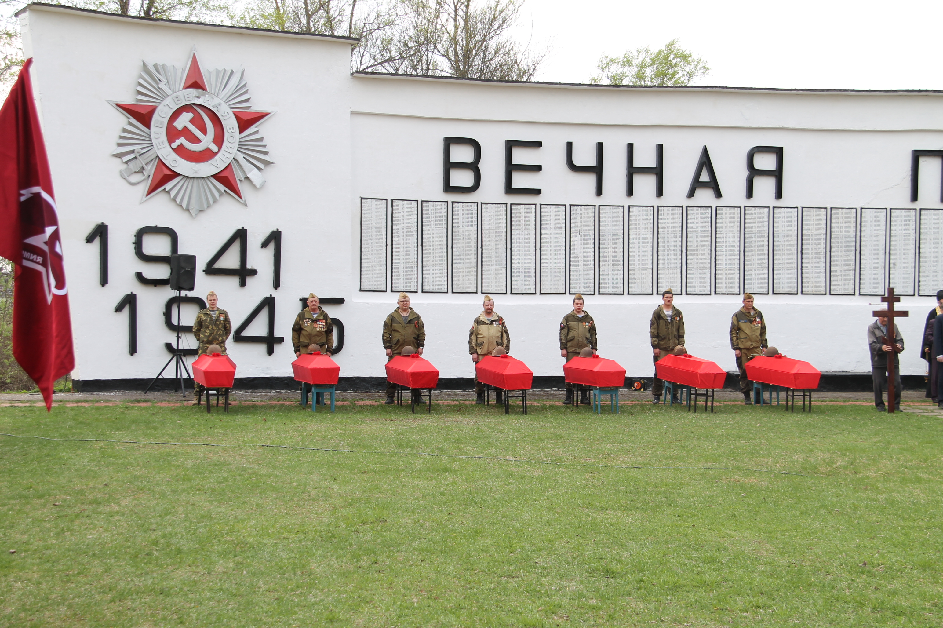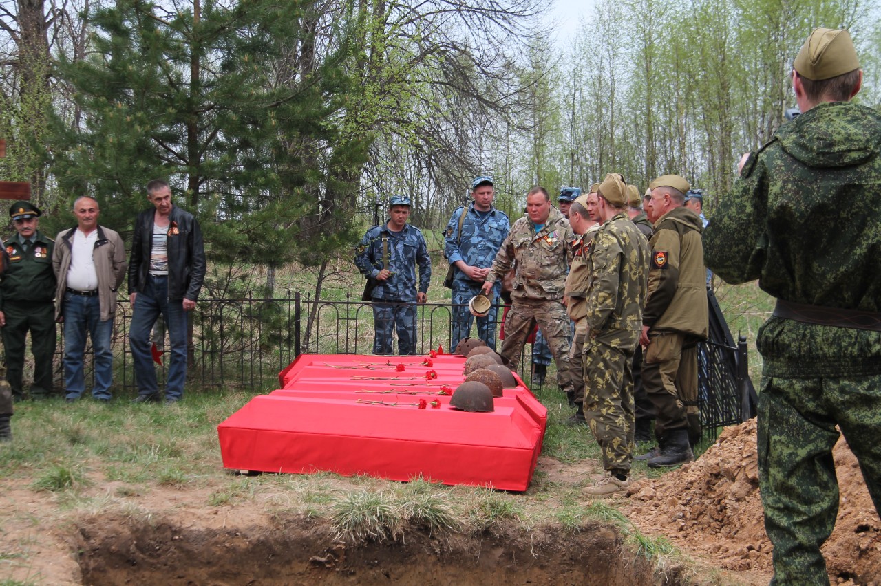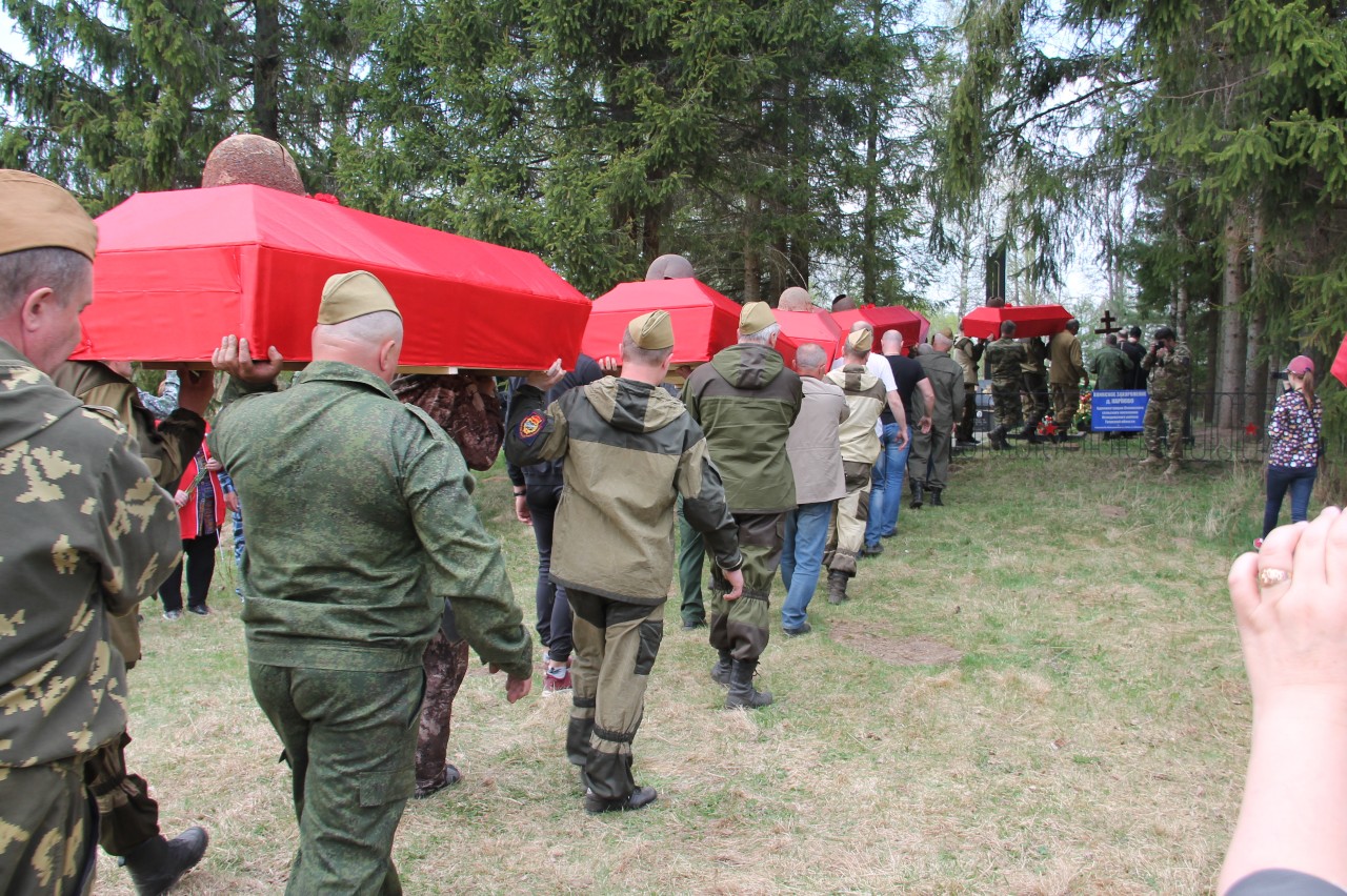 По окончании работы интерактивных площадок участники Конференции собрались в актовом зале Школы №5 для подведения итогов теоретической части Конференции. А впереди всех ждало незабываемое мероприятие 2-й части Конференции – участие в перезахоронении останков семи воинов, погибших в годы Великой Отечественной войны, найденных во время работ поисковыми отрядами г. Нелидово «Гвардия» и «Вечность». Торжественной колонной участники Конференции прошли к мемориалу Славы на площади Жукова, где состоялся митинг-реквием в память о погибших, во время которого была отслужена лития. Все собравшиеся у мемориала Славы почтили память погибших в годы войны минутой молчания. Затем гробы с останками солдат были погружены в машины «Урал» для того, чтобы доставить их в д. Карпово, где должно было пройти перезахоронение. Туда же отправились и участники Конференции. По прибытии после панихиды в память о погибших воинах гробы с останками солдат предали вечному покою на Нелидовской земле, а на их могилу были возложены алые гвоздики. Очень жаль, что имена этих воинов остались неизвестными, но память об их подвиге, мужестве навсегда останется в сердцах нелидовцев.