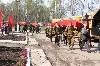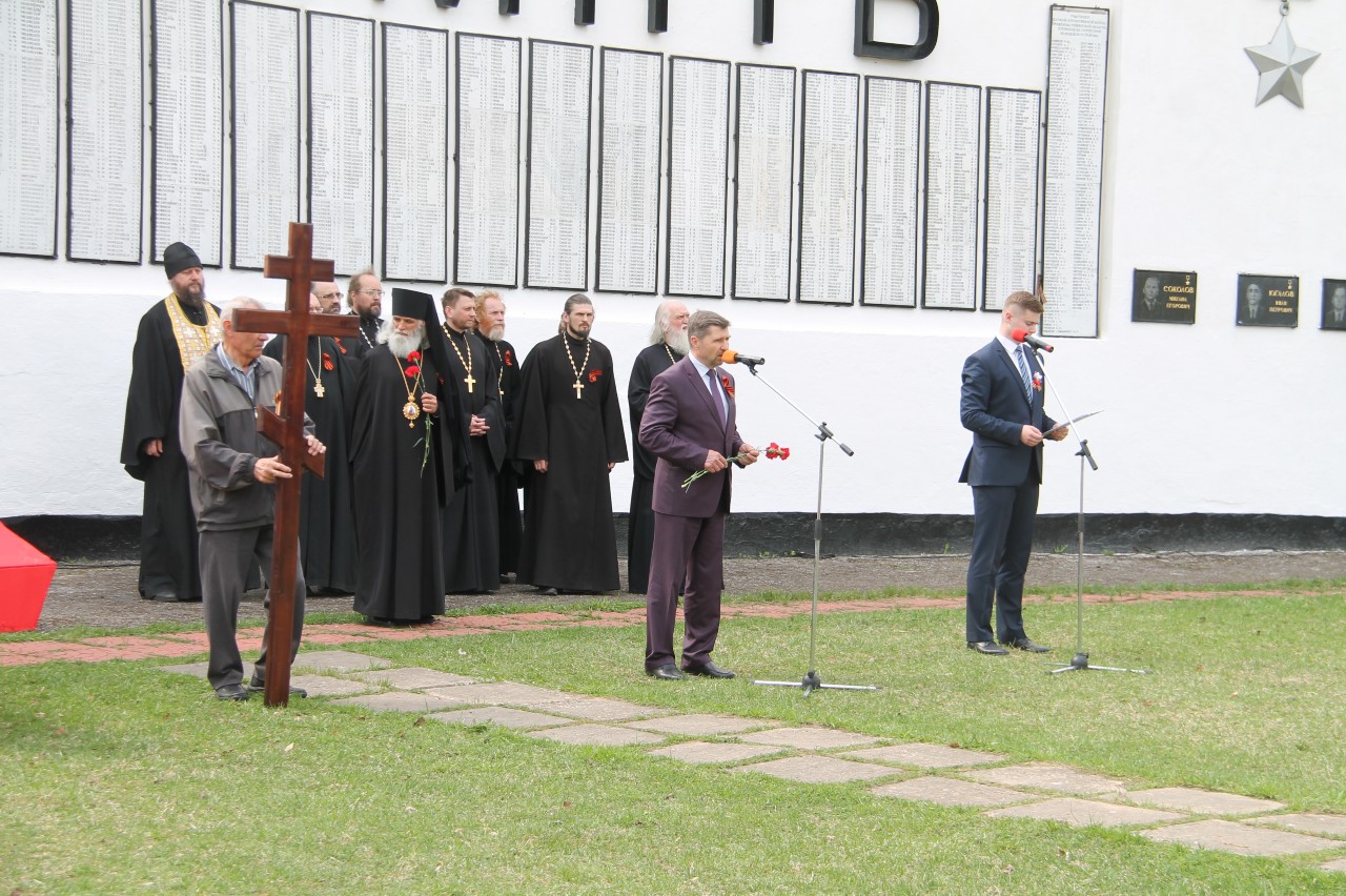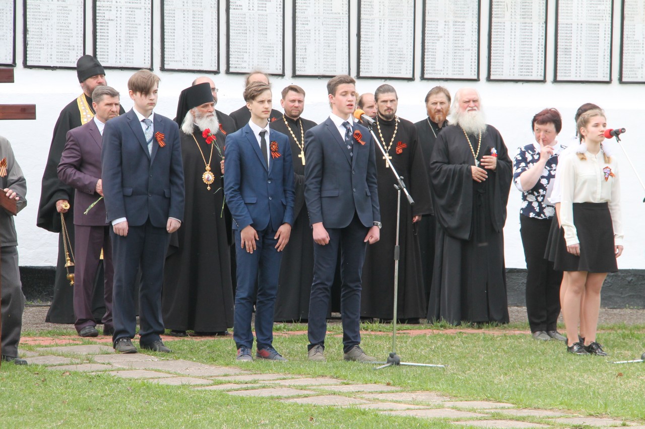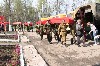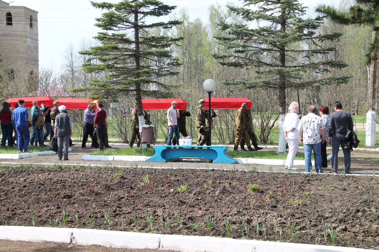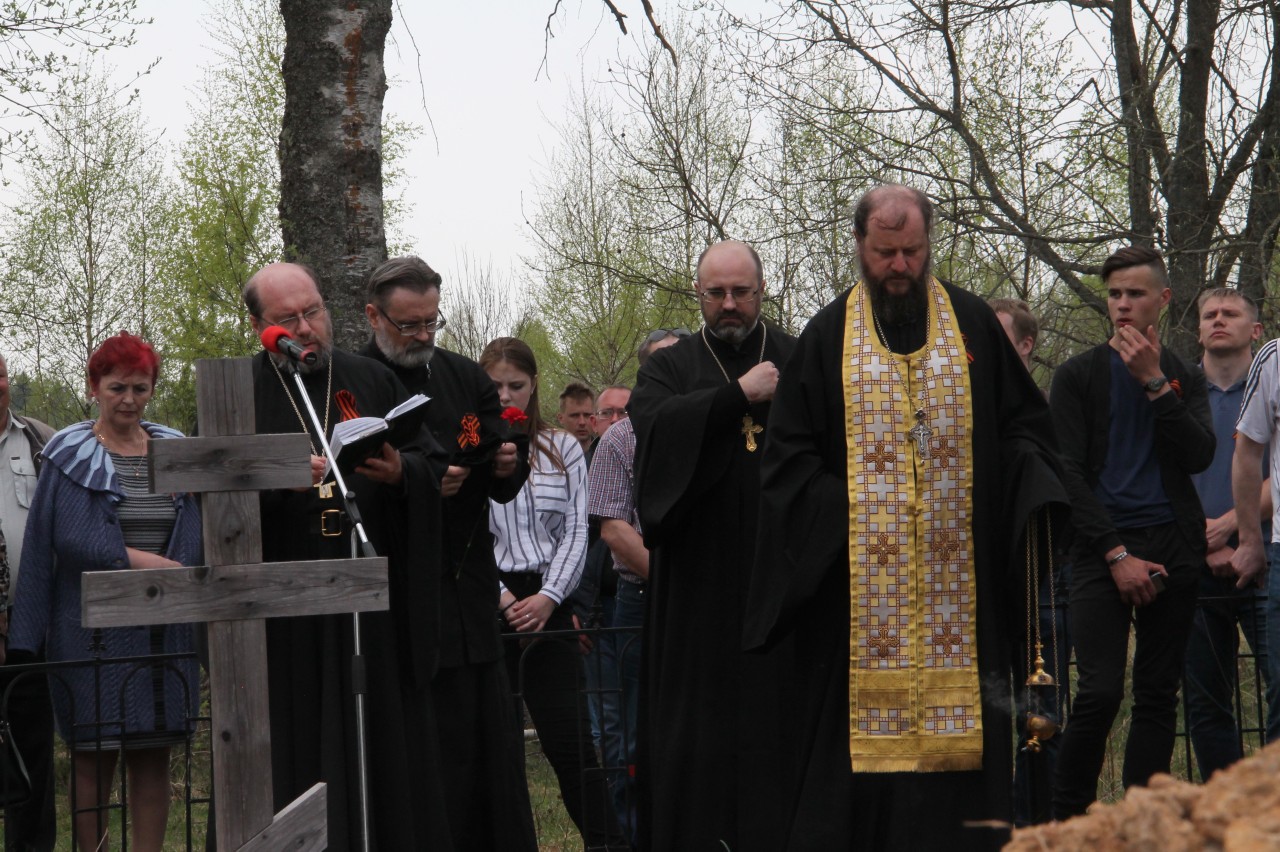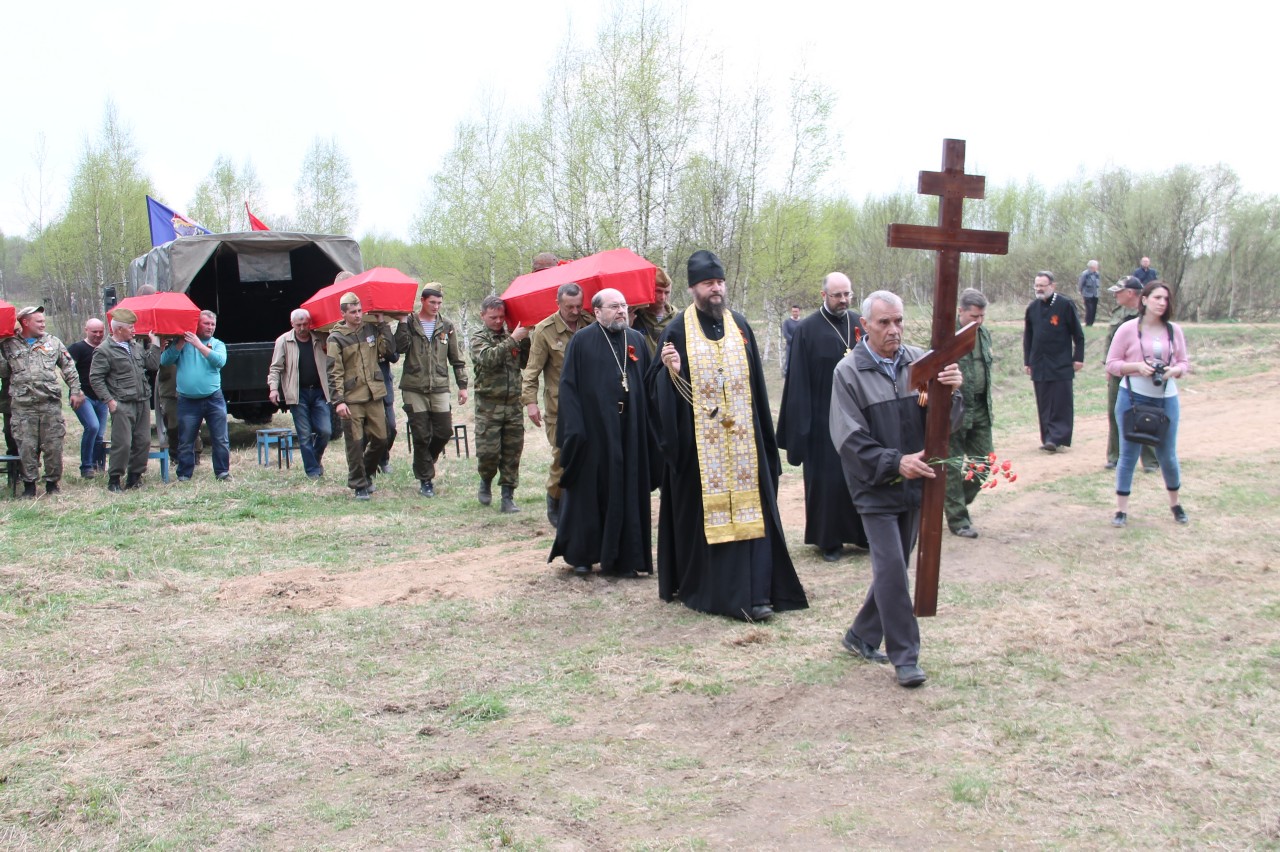 По окончании работы интерактивных площадок участники Конференции собрались в актовом зале Школы №5 для подведения итогов теоретической части Конференции. А впереди всех ждало незабываемое мероприятие 2-й части Конференции – участие в перезахоронении останков семи воинов, погибших в годы Великой Отечественной войны, найденных во время работ поисковыми отрядами г. Нелидово «Гвардия» и «Вечность». Торжественной колонной участники Конференции прошли к мемориалу Славы на площади Жукова, где состоялся митинг-реквием в память о погибших, во время которого была отслужена лития. Все собравшиеся у мемориала Славы почтили память погибших в годы войны минутой молчания. Затем гробы с останками солдат были погружены в машины «Урал» для того, чтобы доставить их в д. Карпово, где должно было пройти перезахоронение. Туда же отправились и участники Конференции. По прибытии после панихиды в память о погибших воинах гробы с останками солдат предали вечному покою на Нелидовской земле, а на их могилу были возложены алые гвоздики. Очень жаль, что имена этих воинов остались неизвестными, но память об их подвиге, мужестве навсегда останется в сердцах нелидовцев.
