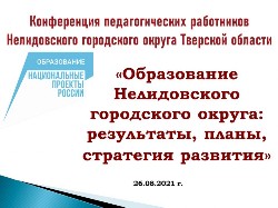 26.08.2021 г. в Школе №5 прошла традиционная августовская конференция педагогических работников Нелидовского городского округа Тверской области «Образование Нелидовского городского округа: результаты, планы, стратегия развития». Участников конференции поздравил депутат Законодательного Собрания Тверской области Руслан Львович Лебедев, Врио Главы Нелидовского городского округа, заместитель Главы Администрации Нелидовского городского округа Александр Иванович Крючков, куководитель Управления образования Администрации Нелидовского городского округа Эдуард Николаевич Кротов. фото>>>