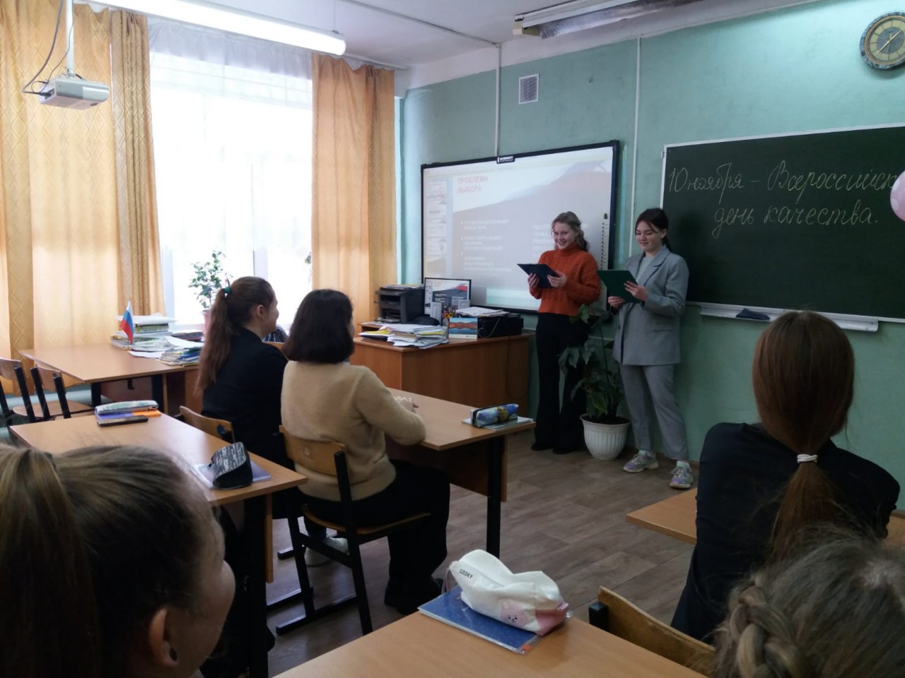 В рамках Недели качества в нашей школе прошли уроки, на которых учащиеся познакомились со знаками, подтверждающими качество товара, учились различать правдивую информацию от гринвошинга и в очередной раз убедились, на сколько важно для жизни и здоровья человека приобретение качественных товаров.