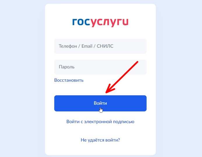 На открывшемся сайте Госуслуг в графе «Телефон/Email/СНИЛС», вводят одно из следующих наименований. Важно, чтобы информация совпадала с представленной на Госуслугах.